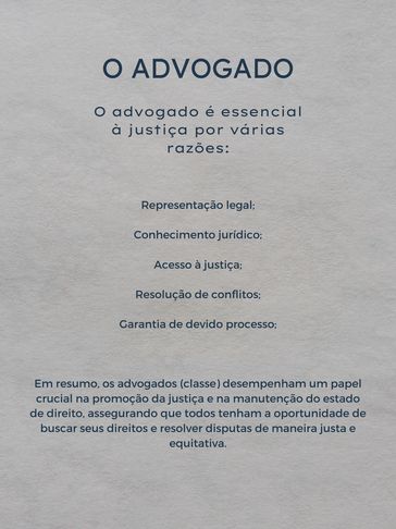 Advocacia extrajudicial, com elaboração de documentos e pareceres. Disponibilidade para reuniões visando a mediação de conflitos, evitando-se o litígio.